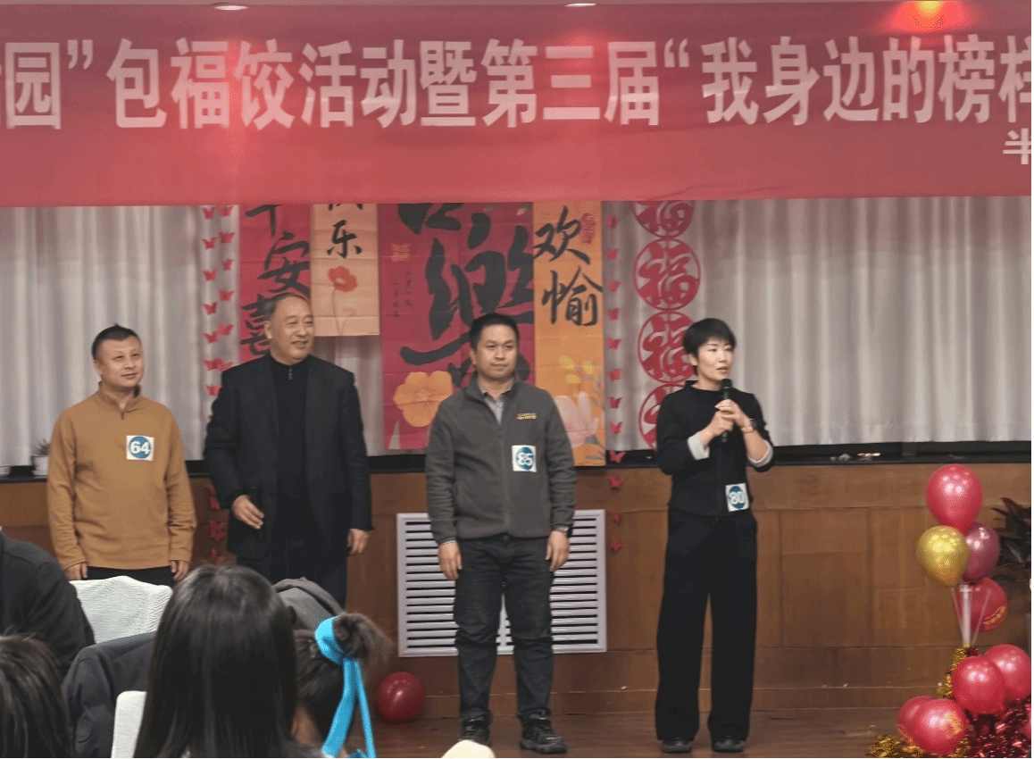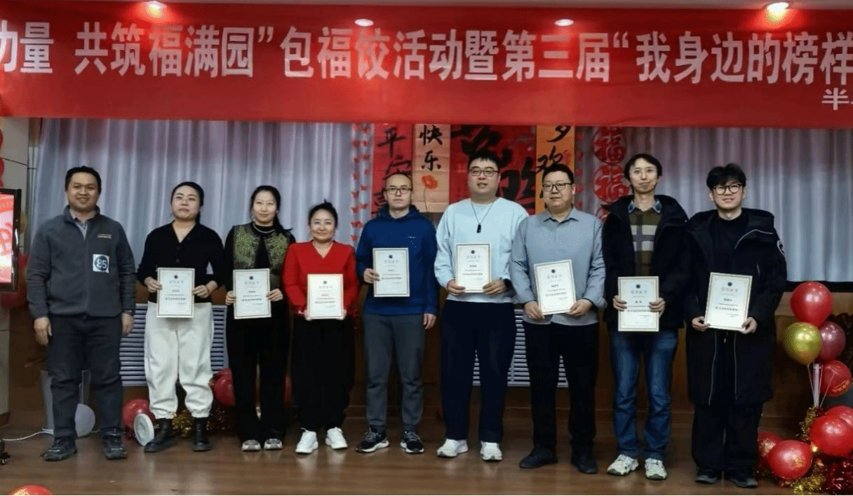 福饺辞旧岁,金龙迎新春。2025年12月31日下午,龙泉餐厅宴会厅暖意融融,半导体与物理学院包福饺活动暨第三届“我身边的榜样教师”颁奖典礼在此举行。活动由全院教师及部分家属共同参与,以团圆辞旧迎新,以崇敬致敬榜样,现场满是温馨喜庆的节日氛围。