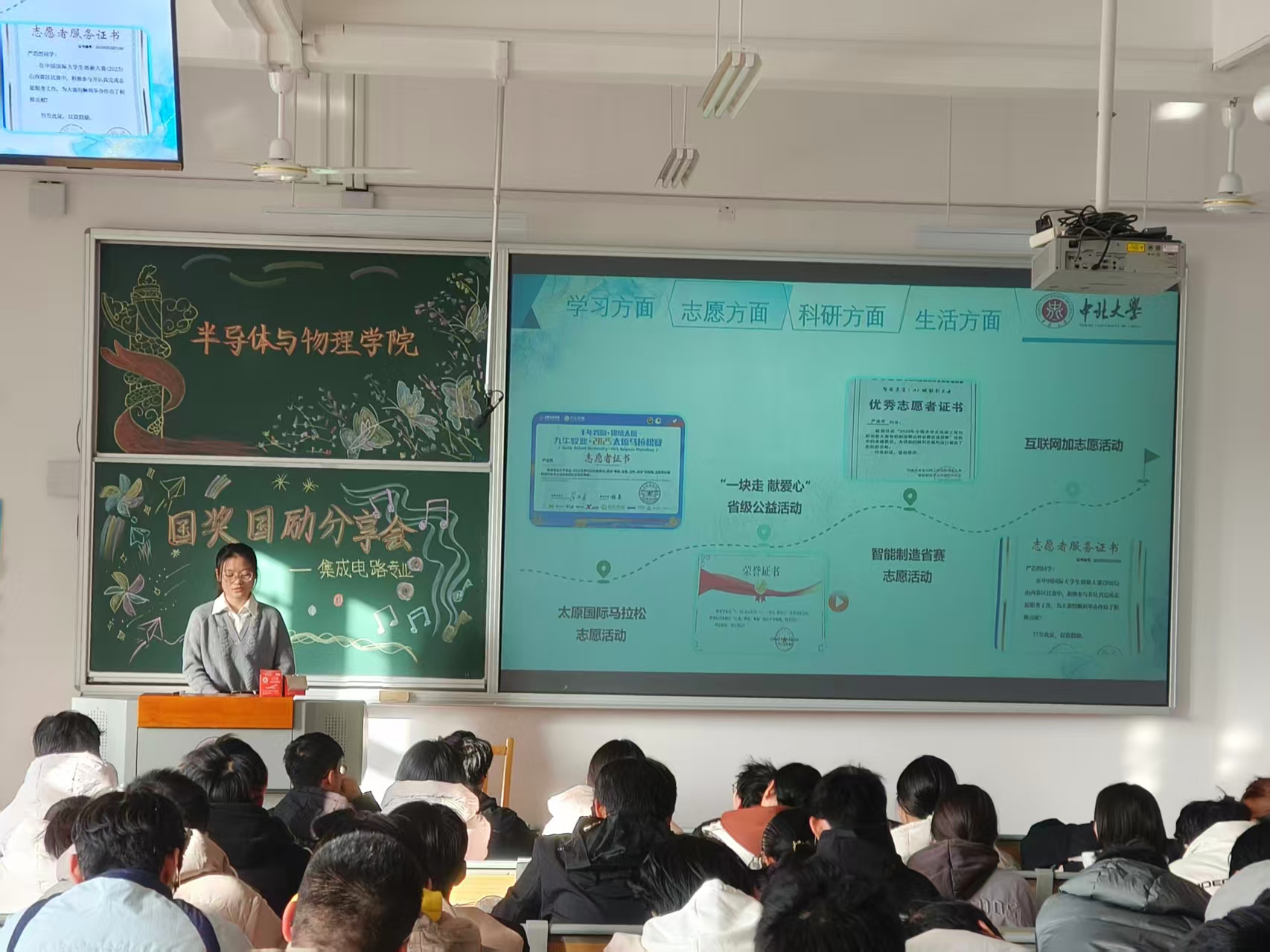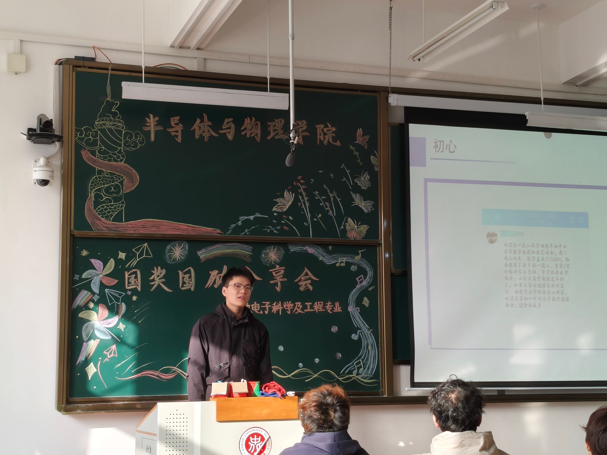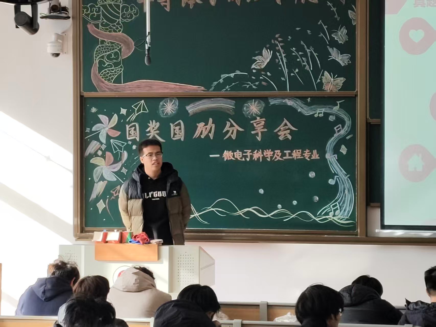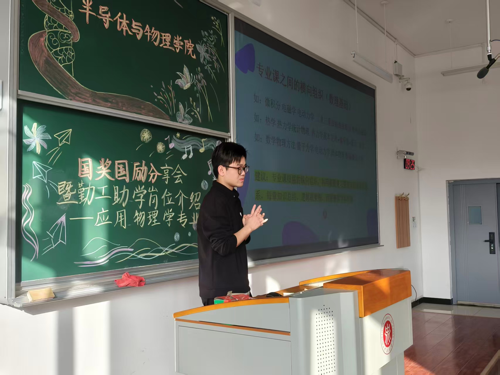 11月23日,半导体与物理学院助学部在王老师的指导下,于教学楼17105H/17101H/17102H教室举办了以“逐光而上,筑梦远航”为主题的微电子科学与工程、集成电路设计与集成系统、以及应用物理学三个专业国奖国励获得者学习经验分享会。本次活动邀请了我院三位2025年国家奖学金获得者及六位2025年国家励志奖学金获得者分享经验,为25级新生提供全面成长参考。