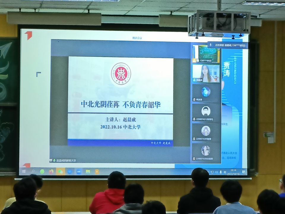 最后由梁庭老师以“知新逐梦,不负少年”为主题进行了学院宣讲,他对本院两大专业的专业升学、就业情况、典型代表以及专业特色和实验平台进行了细致分析,告诉我们未来可期。在会议的最后,他对我们提出了几个个人意见,其中“天下人担天下任,少年事需少年事”这句话最是深入人心。