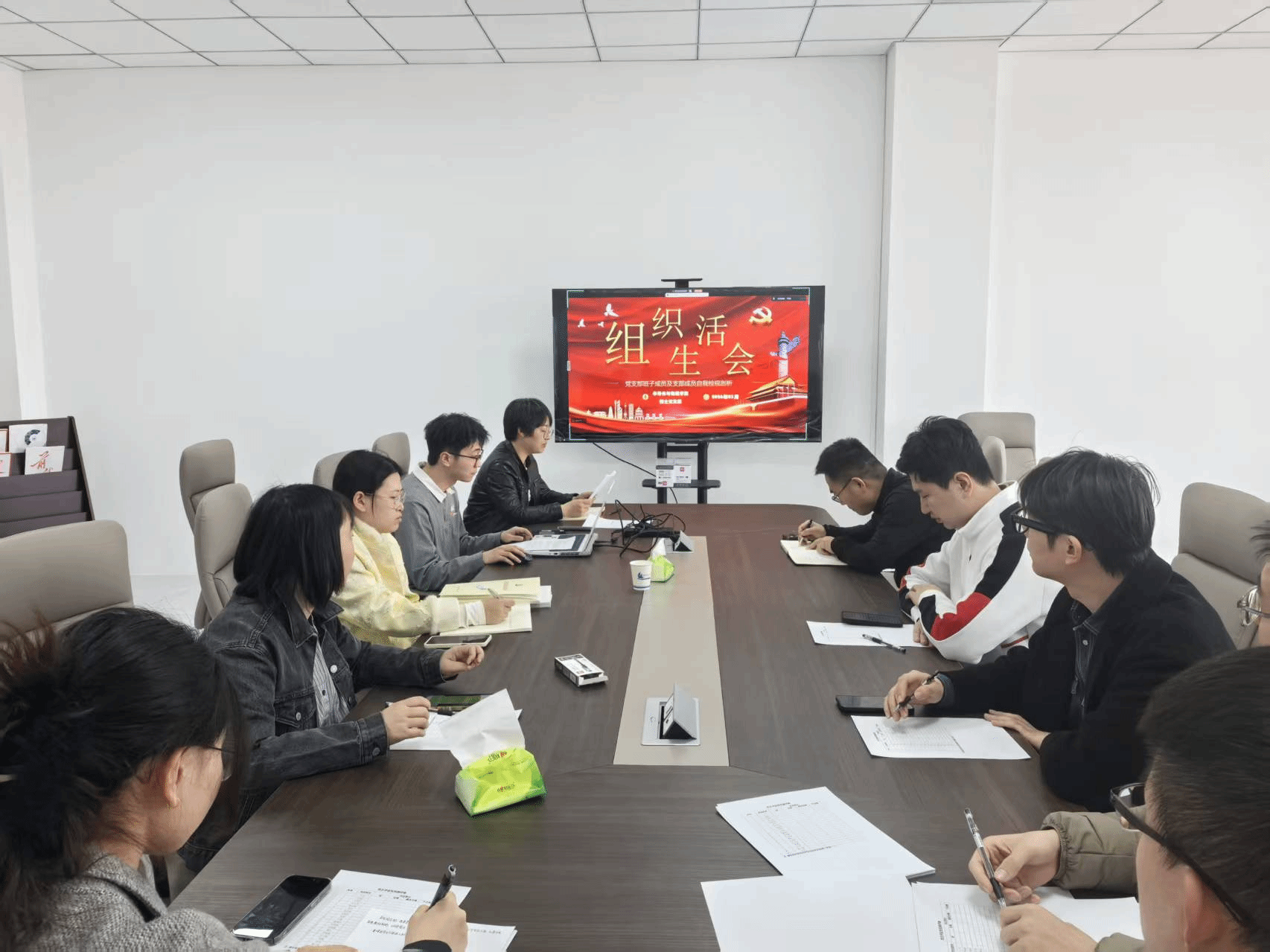 图1中北大学半导体与物理学院博士党支部组织生活会暨民主评议党员大会现场