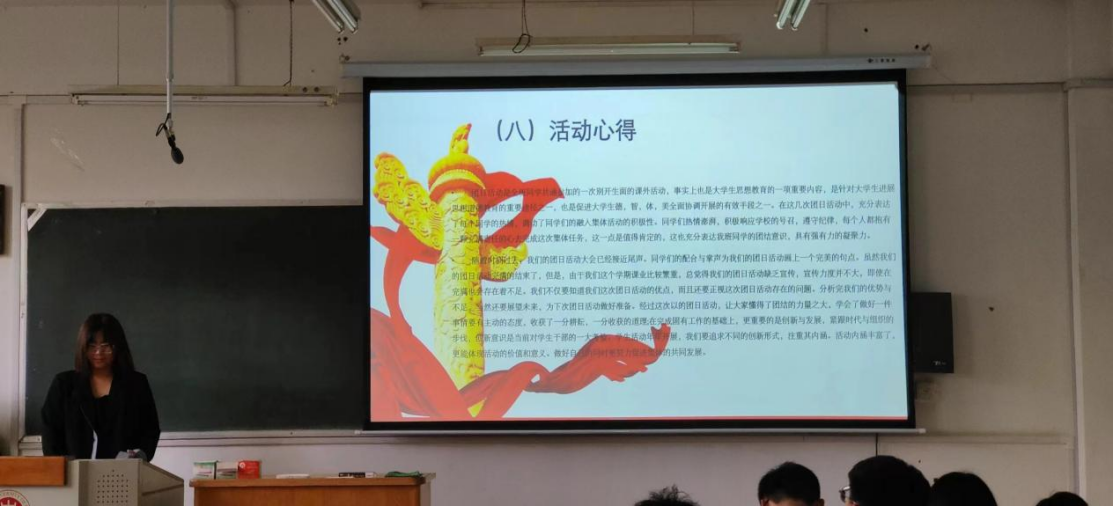 此次比赛由参赛团支部先进行5分钟左右的PPT展示和答辩,再由评委从主题思想,答辩内容,现场表现等方面为每个参赛支部进行打分。在奏唱团歌之后,本次比赛正式拉开帷幕。在答辩环节,有的支部展示了班委带领同学们学习党史校史的内容,有的支部展示了班委带领同学们参观博物馆,了解山西历史文化的活动经历。还有部分团支部积极展示支部举办的特色活动,以多种多样的形式展现着支部的青春活力。