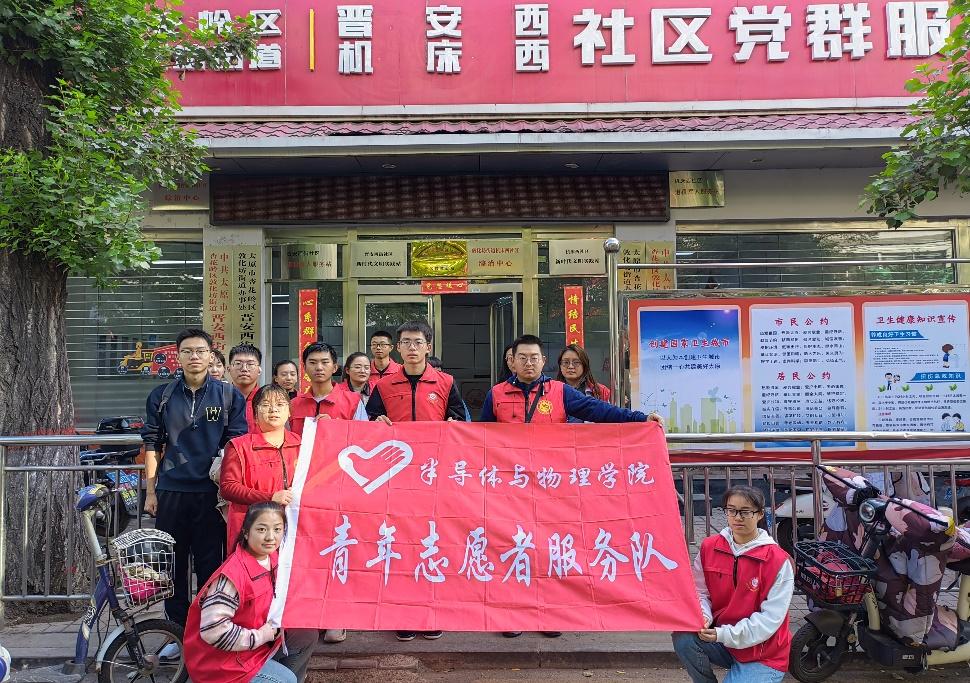 2023年10月,为彰显时代青年的青春面貌,弘扬志愿服务精神,中北大学半导体与物理学院团委青志部组成芯火志愿队“兵分三路”前往太原市各社区进行“芯火”志愿周活动。