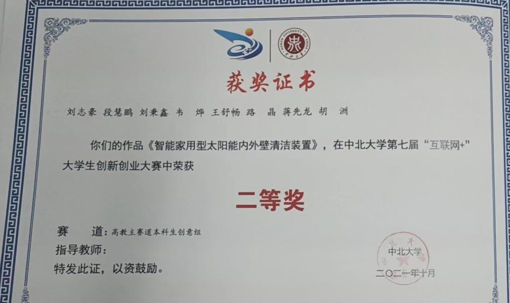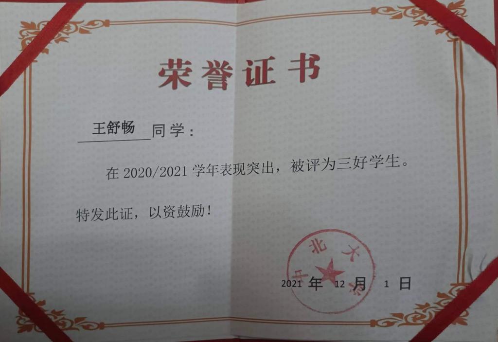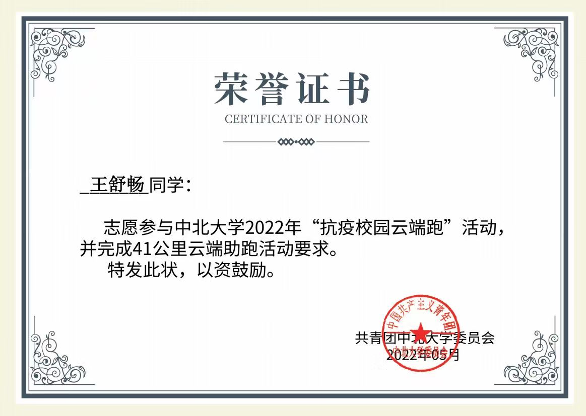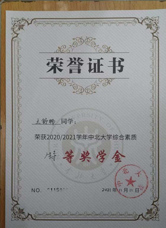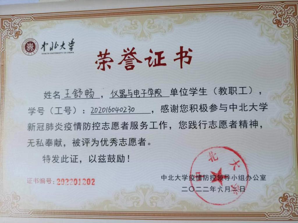 同时获得中北大学校级、院级优秀团员,优秀志愿者等荣誉称号;
