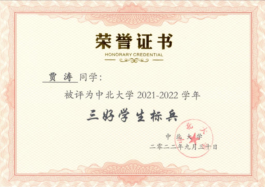 中北大学研究生三好学生标兵