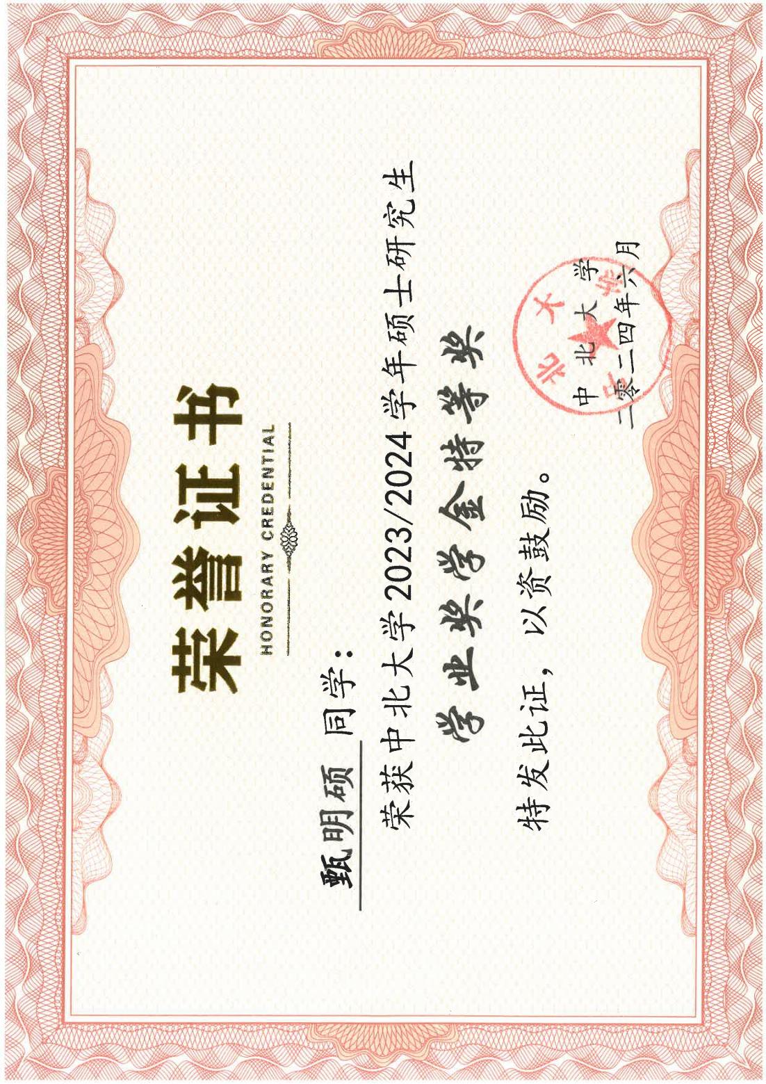 甄明硕,男,汉族,共青团员,河北石家庄人,中北大学半导体与物理学院电子科学与技术专业2021级硕士研究生。目前已被南昌大学录取继续攻读博士学位。