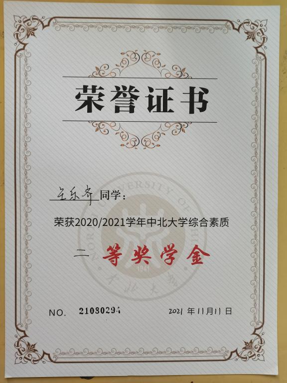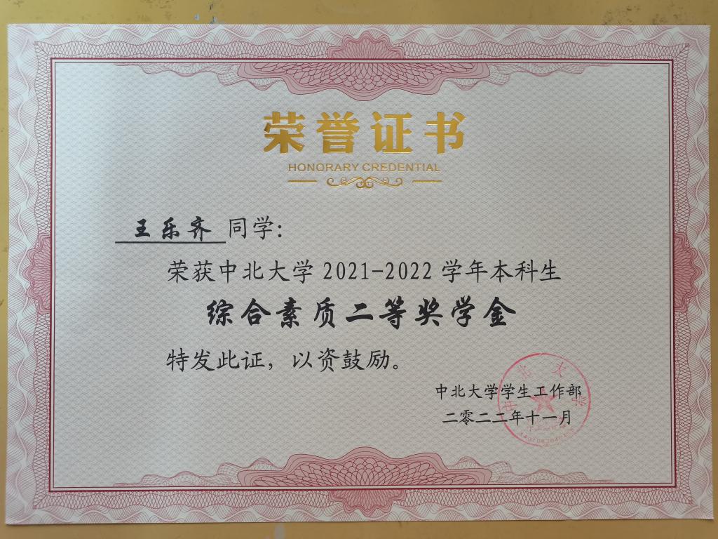 王乐齐,女,汉族,内蒙古自治区赤峰市人,中北大学半导体与物理学院应用物理学20080742班学生。曾获得国家励志奖学金两次,综合素质二等奖学金两次,综合素质三等奖学金一次,中北大学2022年“刘鼎杯”大学生创新创业大赛铜奖。