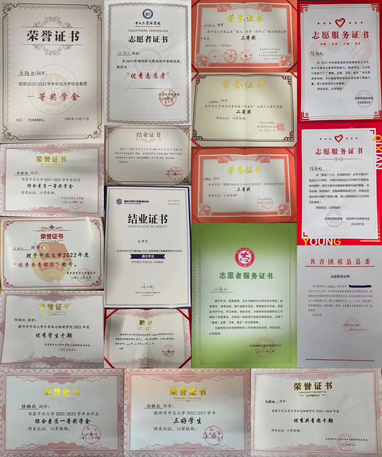 任桓北,男,汉族,2002年8月生,山西祁县人,中共预备党员。半导体与物理学院应用物理学专业20080742班学生。平均学分绩点3.69,曾担任物理党支部副书记、20080742班班长、组织宣传委员、中北大学教务处宣传团队部长、中北大学电视台主播组成员。本科期间获得校级三好学生、优秀共青团员、优秀学生干部、优秀志愿者、连续四年获得综合素质一等奖学金等荣誉。多门专业核心课程取得95+的优异成绩,现已推免至中北大学机电工程学院攻读硕士学位。