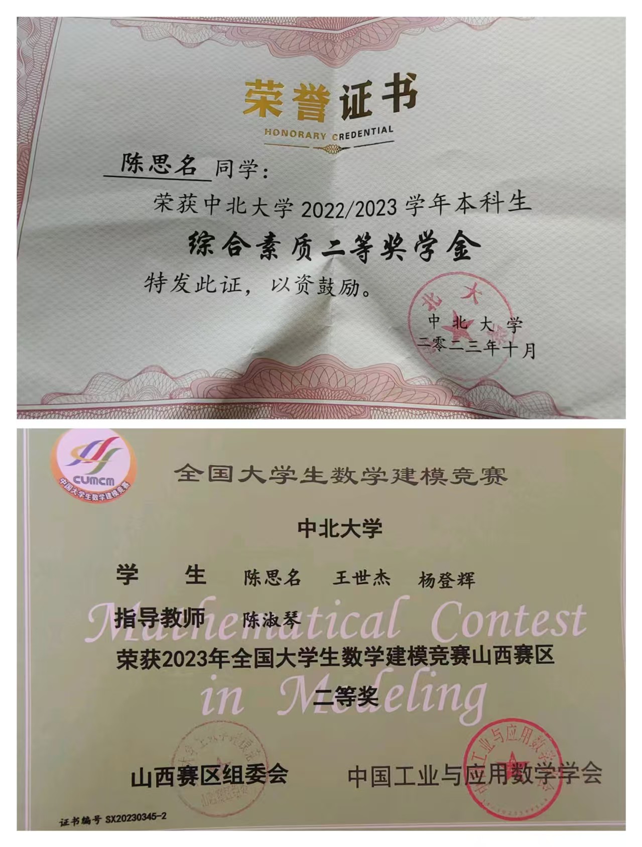 大学是一个急需自我学习,自我奋斗,自我调整的阶段,同样的四年不同的人会过出完全不同的结果,只要坚定了自己的目标,就需要积极搜寻信息,踏踏实实一步一步向着目的地攀登,因此我在本科期间努力学习专业课知识,除开考试的内容,那些日后可能需要用到的知识或者技能我也在逐步完善。在此期间,我参与山西省物理学术竞赛拓展知识宽度,参加全国大学生数学建模竞赛学习编程技能,跟随老师学习相邻专业的知识并加入课题组丰富自己。在坚持与努力下,那些为之付出汗水的事物终究是为我提供了更近一步的机会,让我在之后的道路上走得更加顺畅,也成为了我走上更高一层平台的基石。