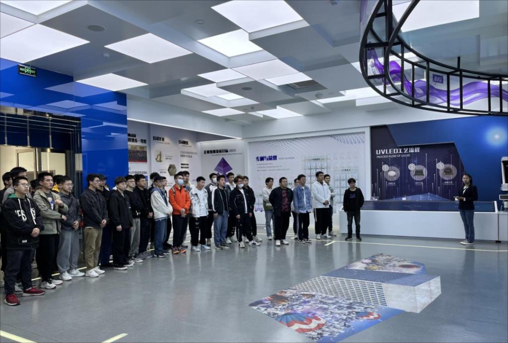 4月14日,半导体与物理学院150余名师生走进中科潞安,先后在中科潞安展厅、芯片车间、外延车间、CNAS检测实验室和MOCVD研发室进行参观,并与中科潞安研发工程师深入交流。同学们认真听取了深紫外LED外延、芯片、封装的生产工艺介绍,通过学习公司创始人李晋闽引领我国新型半导体材料与器件研究和产业化的历程,激发了同学们投身半导体和物理事业的创新热情。在创新产品展区,我院师生对空气消毒机、包裹消毒机、手持式杀菌仪等家用消杀产品表现出极大的兴趣,对深紫外LED公共场景应用技术有了全新的认识。