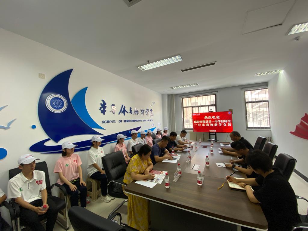 师生们齐聚半导体与物理学院会议室,参加座谈。报告会李仰军书记主持。首先,李仰军书记致欢迎词,表示对师生一行的热烈欢迎,同时介绍了我校及我院的发展历程和招生政策,诚挚希望今后能和同学们相约中北。