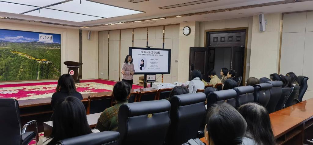 为迎接“三八”国际妇女节,提升女教职工良好职业形象,持续提高女教职工的幸福感,3月19日,半导体与物理学院开展“魅力女性,芳华绽放”的女神节美容护肤健康公益讲座。本次活动邀请了高级美业讲师蔺晓宇老师。蔺老师通过丰富的图文资料,结合多年的护肤、化妆经验,与老师们共同学习美容护肤和健康保养的知识,分享了一些实用的护肤心得。
