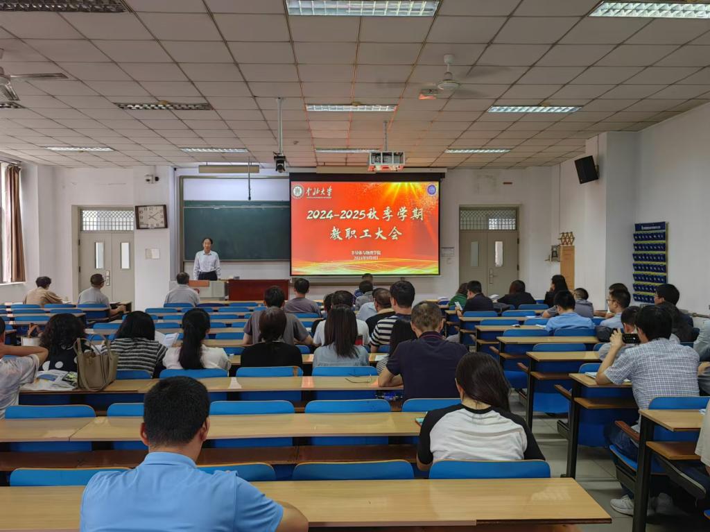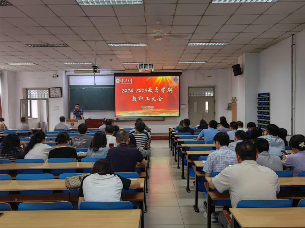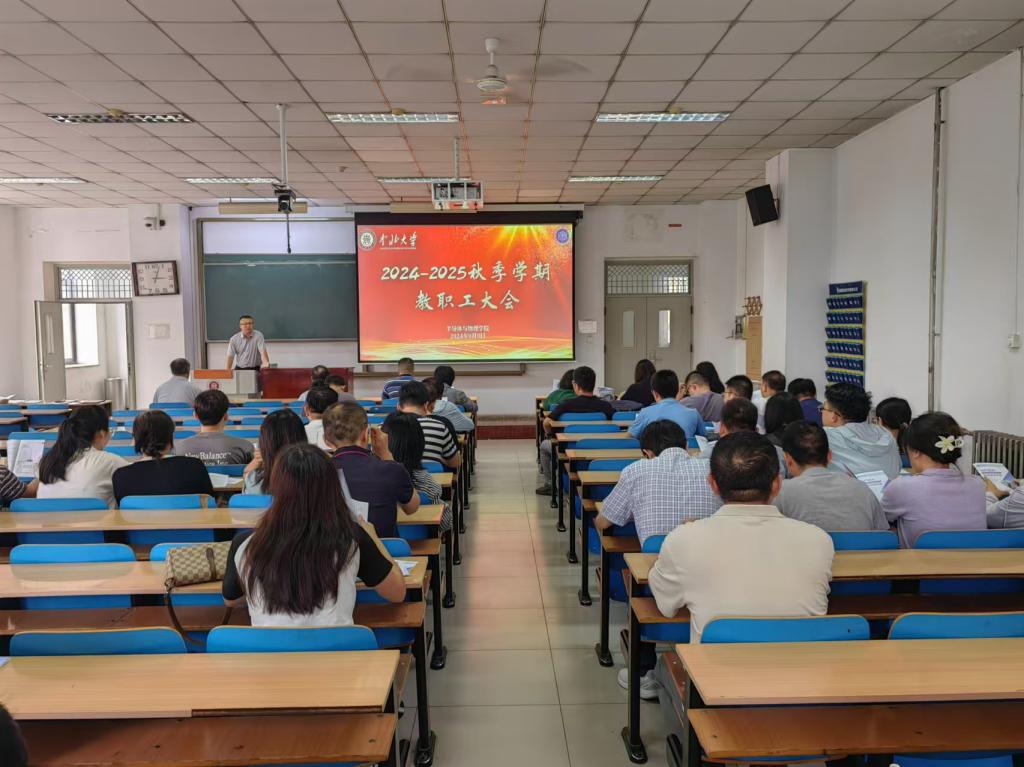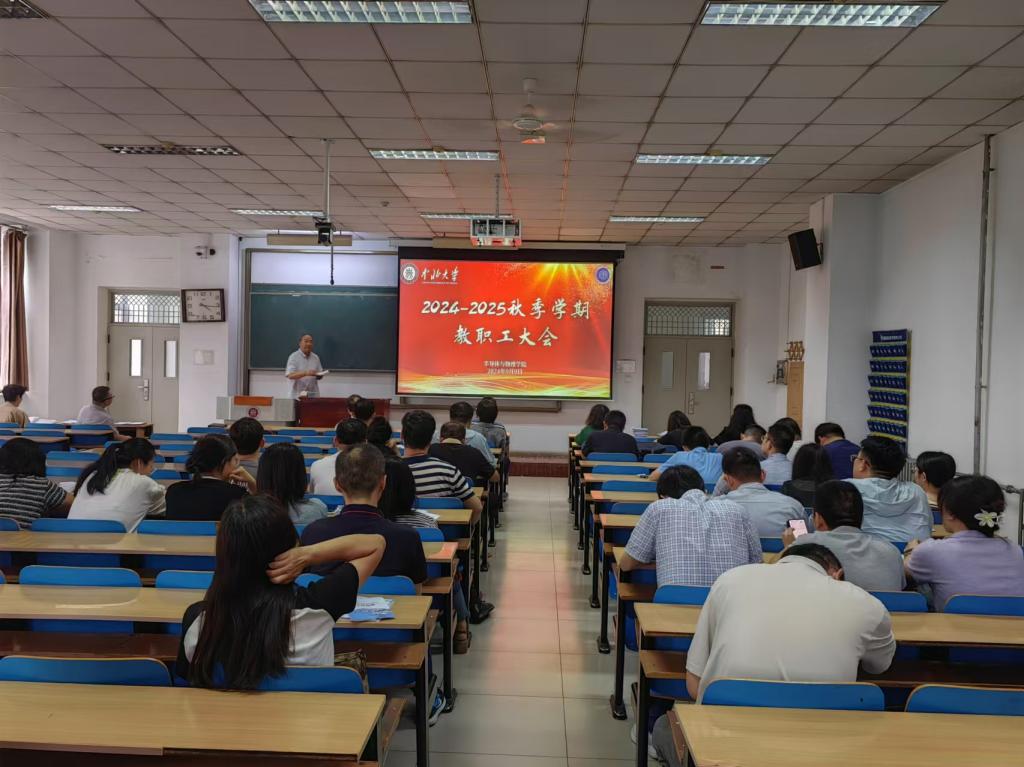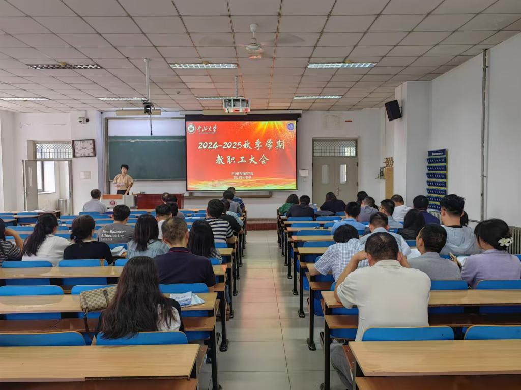 新学期伊始,半导体与物理学院教职工大会于9月9日下午在11305教室召开,会议由学院副院长唐军主持,本次大会对学院上半年工作进行了梳理总结,并对学院本科教育教学审核评估的各项工作做了详细部署。