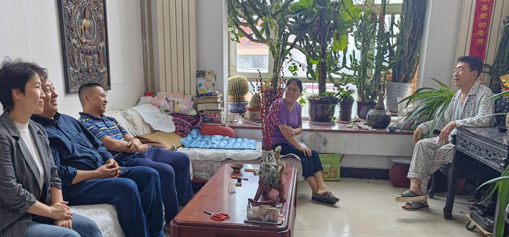 在两位教授家中,学院领导与两位教授亲切交谈,详细询问了他们的生活起居、健康状况,向他们介绍了学院的发展状况和教学成果。同时也感谢两位教授多年来为学院、为学生付出的辛勤努力。温廷敦教授和许丽萍教授虽已退休,但仍然关心学院的发展,为学院的发展做出了积极的贡献。