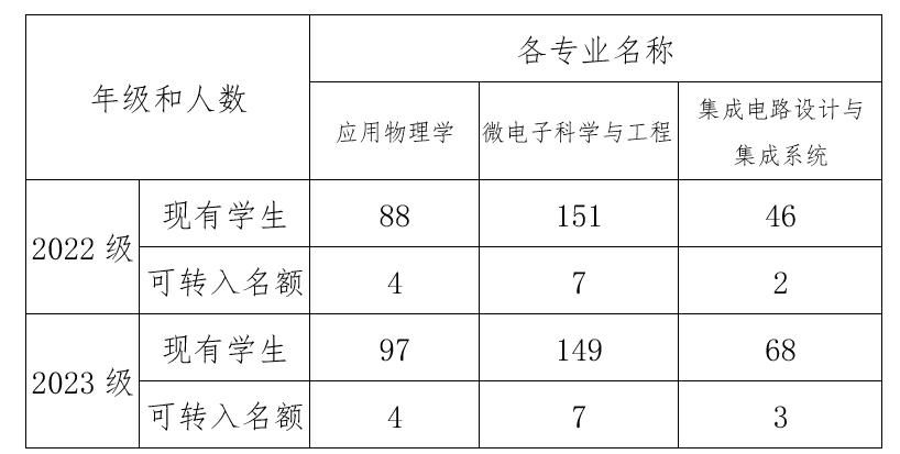 ②申请转入微电子科学与工程专业、集成电路设计与集成系统专业、应用物理学专业跨学院转专业者,要求同时满足以下三点: