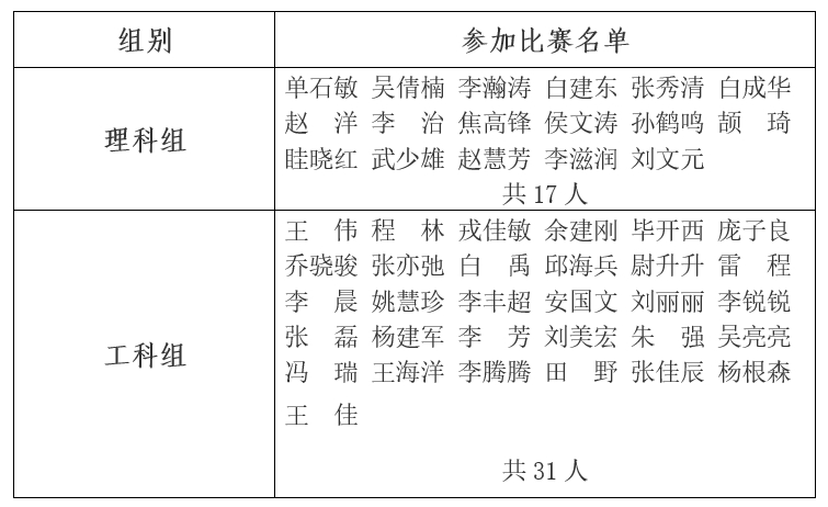 学院比赛分工科组、理科组两组,分组具体名单如下: