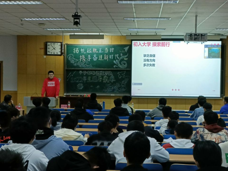 2022年10月16日下午7:00,半导体与物理学院“扬帆起航正当时,携手奋进新时代”——半导体与物理学院2022年生涯导航季在11号楼11108H举行。半导体与物理学院全体2022级本科生参加了会议。