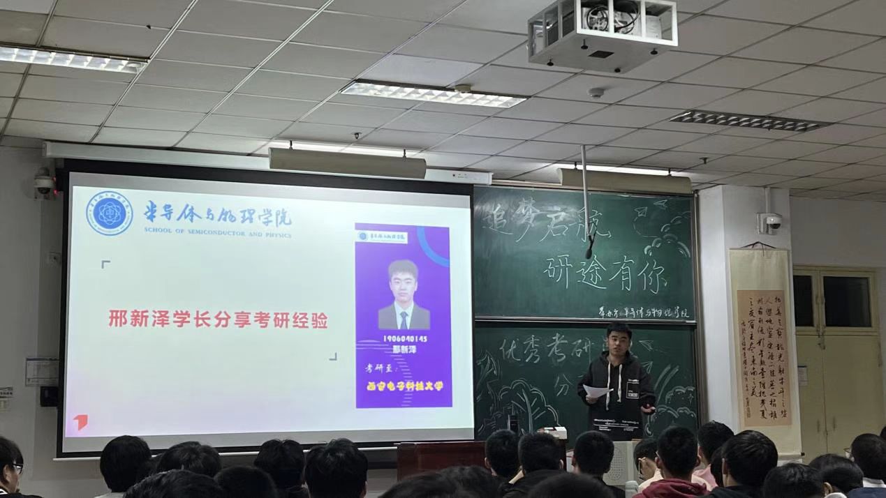 李星宇学长对以上三位学上的看法表示肯定,并总结了各个科目的学习方法。鼓励大家相信自己,考研不用太过焦虑,按适合自己的方式去学习。并且幽默风趣的向大家阐述了自己的想法:物理专业随着时代的发展必定迎来上升期。最后他也说:物理专业的学弟学妹们报考物理专业是一种极大的优势,衷心的希望半导体与物理学院所有学子能够就学心仪院校。