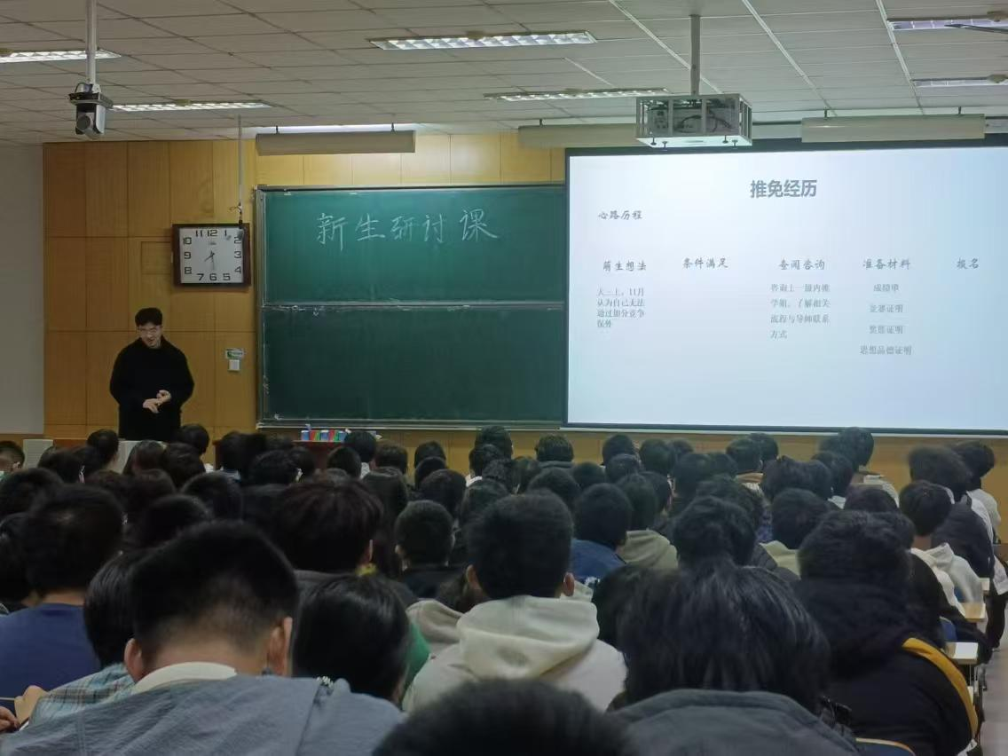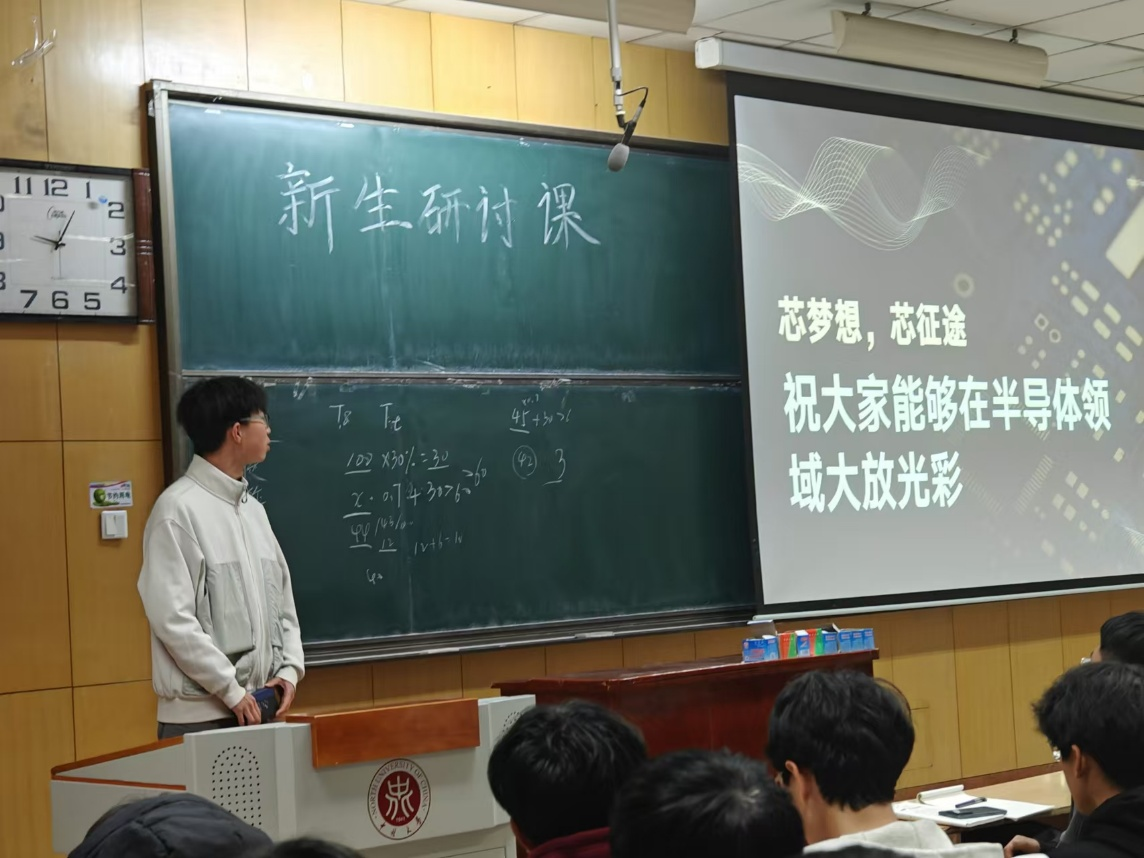 2024年11月7日,半导体与物理学院与11号楼11208H开展2024级生涯规划新生研讨课。中北大学特邀孟玉钧,吴佩东和田珍榛三位优秀学生代表进行现场授课。2024级全体半导体与物理学院新生参与本次课程。课程由李丰超老师主持。