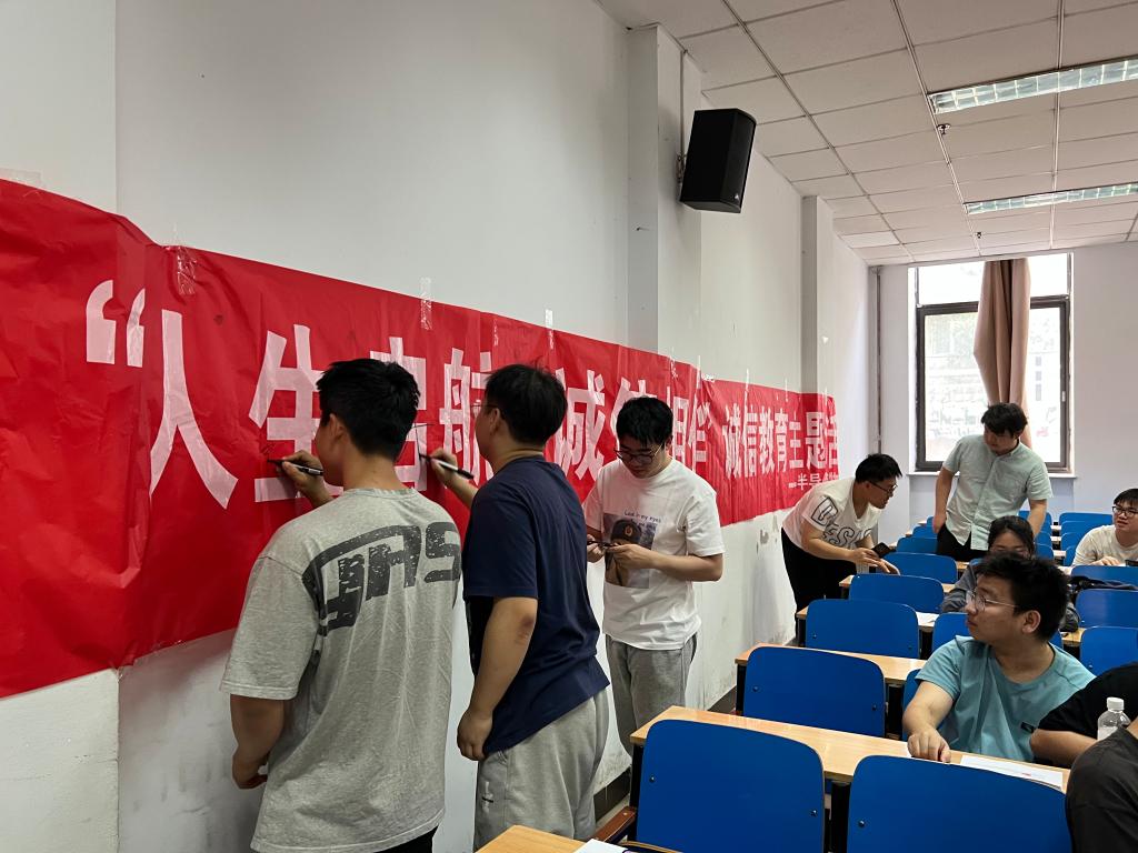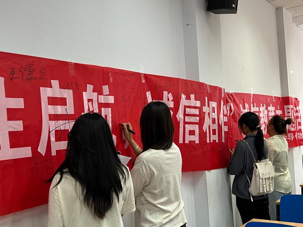 现场互动环节气氛热烈,同学们围绕“助学贷款结清证明办理”“征信异议申诉流程”等具体问题积极提问,老师逐一解答并给出操作指南,赢得阵阵掌声。随后,“人生启航·诚信相伴”主题签名仪式将氛围推向高潮:全体毕业生执笔在红色横幅上郑重签下姓名,一笔一画间,不仅是还款承诺的确认,更是对“言而有信、行而有责”品格的坚守。