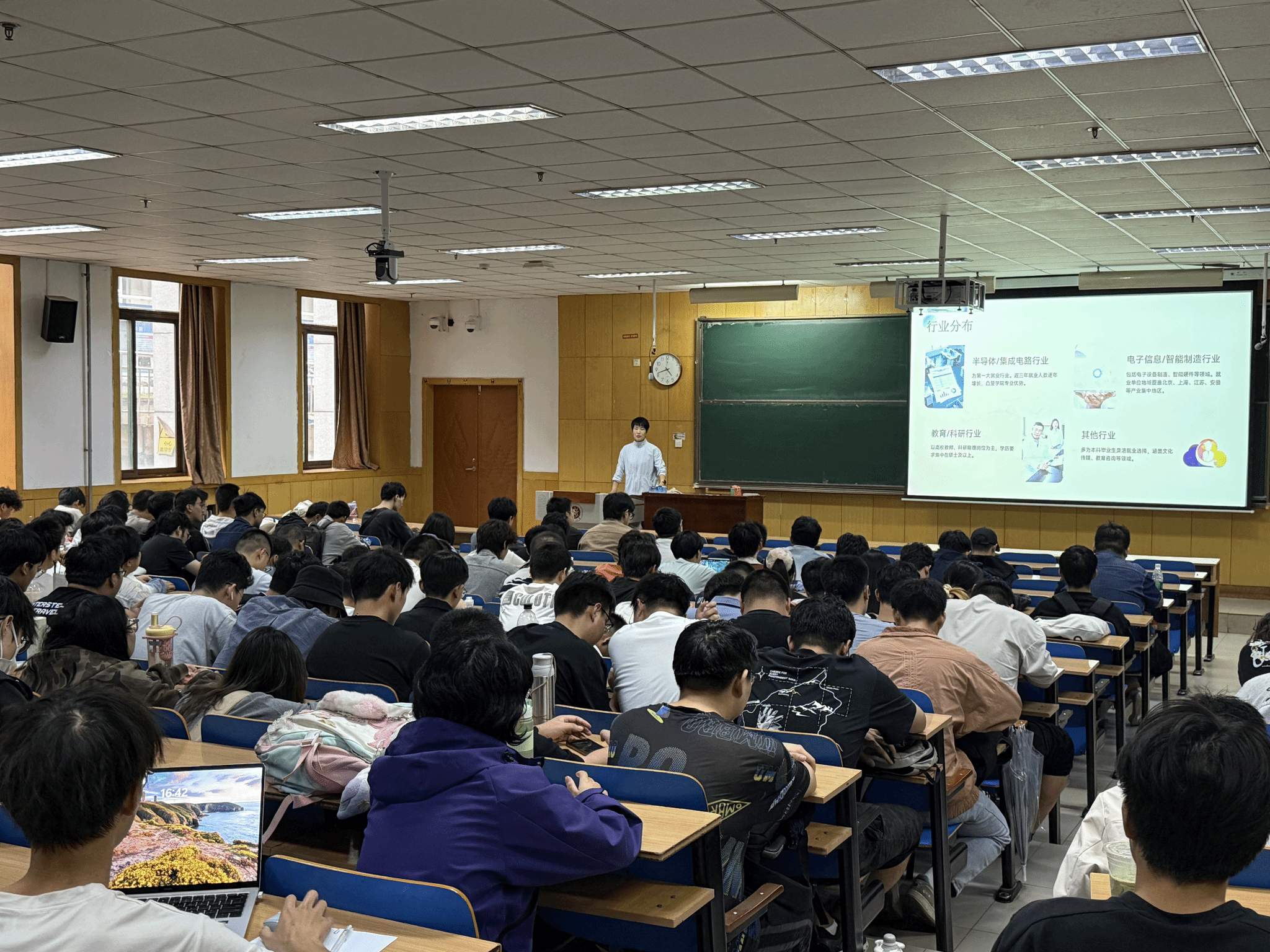 会上,荆伟伟副书记结合当前半导体行业发展趋势与就业市场现状,强调了“精准定位”的重要性。鼓励同学们要树立清晰目标,无论是选择考研深造还是直接就业,都要做好精准规划。建议大家要积极利用校园招聘、企业宣讲会等渠道了解行业发展需求,针对性提升专业技能与软实力。同时,提醒学生避免“盲目跟风考研”与“就业焦虑”,鼓励大家制定阶段性目标,坚定信心,稳步前进。