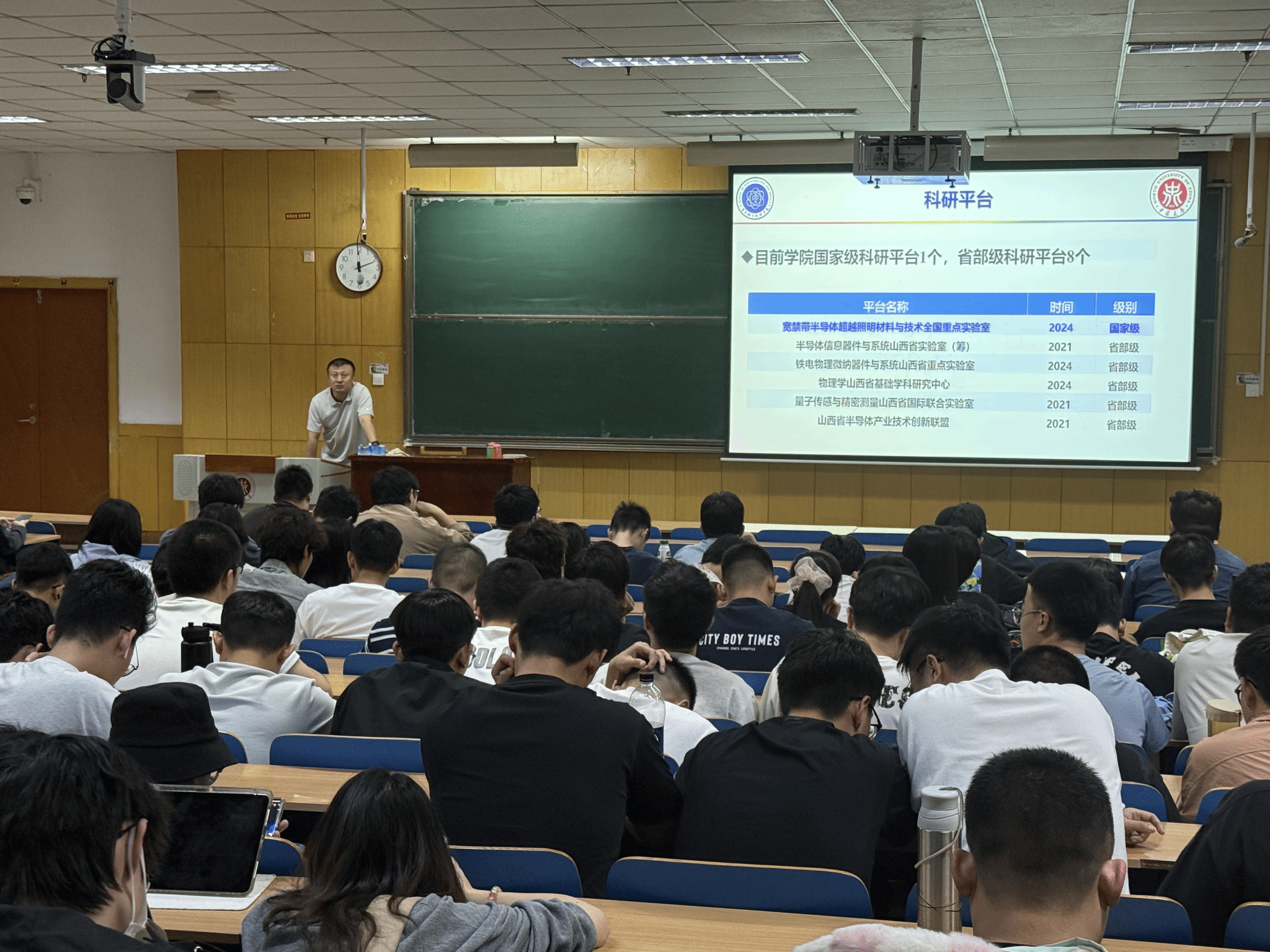 9月16日,半导体与物理学院在11108H教室召开考研与就业动员大会,为大四毕业生解决升学与求职过程中的困惑。副院长梁庭、副书记荆伟伟、教师代表及全体大四学生参会。